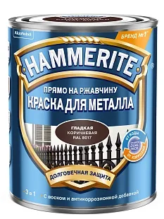 Краска для металлических поверхностей алкидная Hammerite гладкая коричневая RAL 8017 2 л.