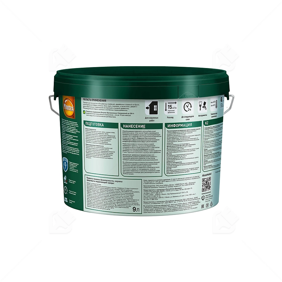 Пропитка-антисептик защищает от плесени и образует декоративное финишное покрытие. Гибридное акрил-алкидное связующее создает атмосферостойкое и паропроницаемое покрытие, позволяя древесине "дышать". Эластичное тонкое покрытие идеально подходит для обработки бревенчатых фасадов и бань. Благодаря использованию воды в качестве растворителя, пропитка-антисептик имеет нейтральный запах, легко наносится и быстро сохнет. Полуматовое покрытие сохраняет видимой текстуру древесины, а насыщенный цвет пропитки усиливает защитные свойства.