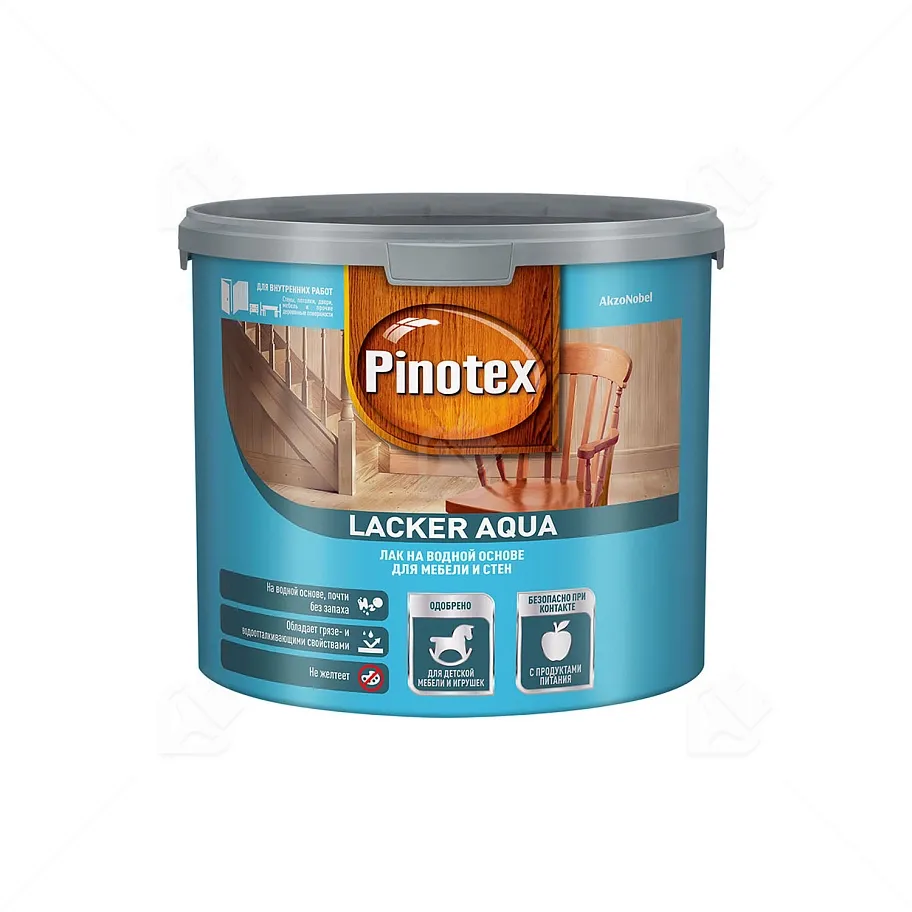 Лак Pinotex Lacker Aqua 10 на водной основе для защиты деревянных поверхностей, включая детскую мебель и игрушки. Образует эластичное покрытие, устойчивое к ударам, царапинам, а также воздействию воды, грязи, жира и бытовой химии. Колеруемый матовый Лак для дерева Пинотекс Лакер Аква 10 на водной основе - удобен в нанесении, легко разравнивается и не оставляет следов от инструмента при нанесении.